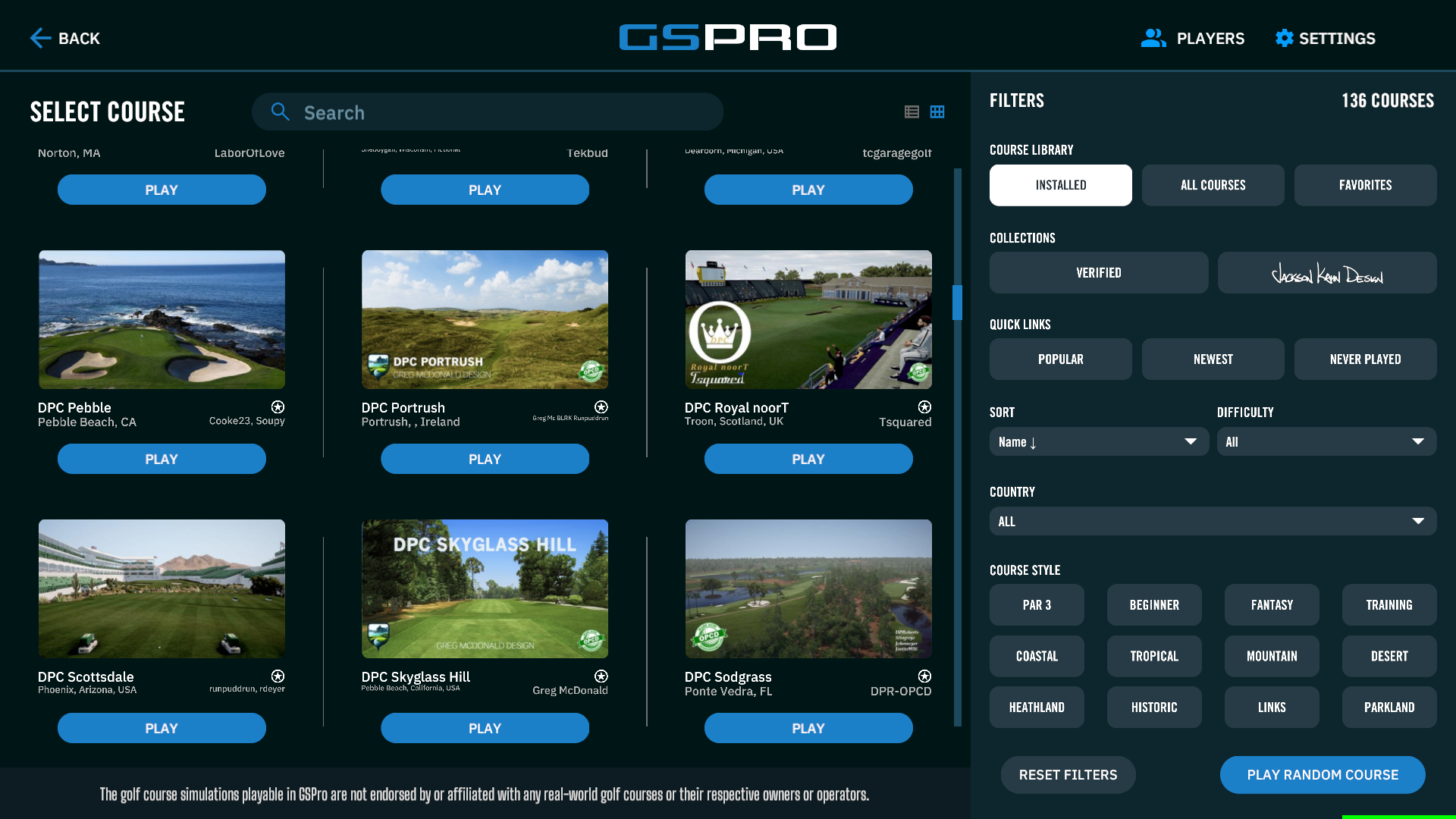 Ett system som kommer från USA där privatpersoner kan bygga banor själva. Mjukvaran ör öppen så utvecklare designar och bygger banor löpande. T.ex. i skrivande stund är det dags för Ryder Cup nästa vecka på Bethpage Black. Då är det en designer som gjort den banan med läktare och omgivning likt det vi har att vänta oss i sändningen av den riktiga tävlingen.